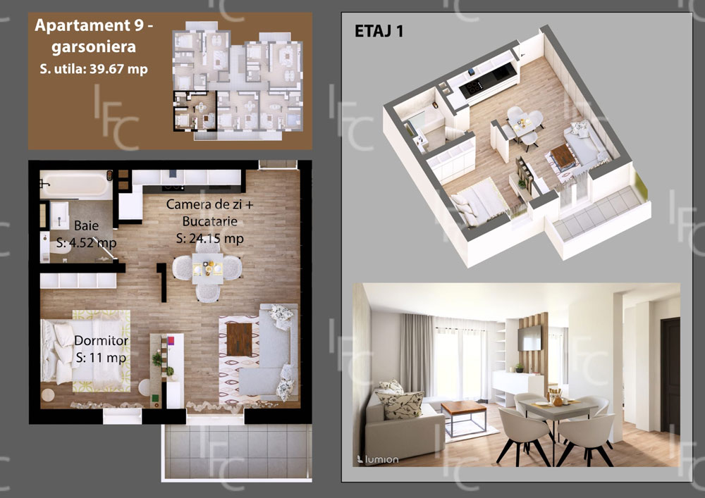 Blocul rezidențial IFC Imobiliare propune un stil de viață contemporan și confortabil, adaptat perfect cerințelor fiecărei familii. Garsonierele și apartamente cu 1, 2 și 3 camere sunt ideale pentru tineri, cupluri sau familii