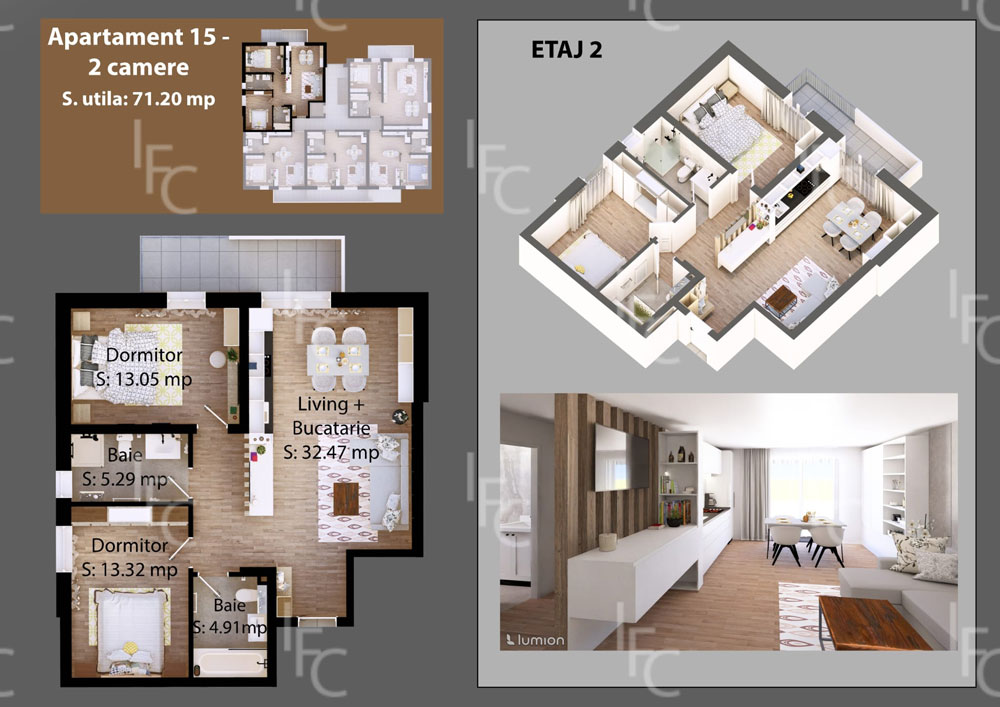 Blocul rezidențial IFC Imobiliare propune un stil de viață contemporan și confortabil, adaptat perfect cerințelor fiecărei familii. Garsonierele și apartamente cu 1, 2 și 3 camere sunt ideale pentru tineri, cupluri sau familii