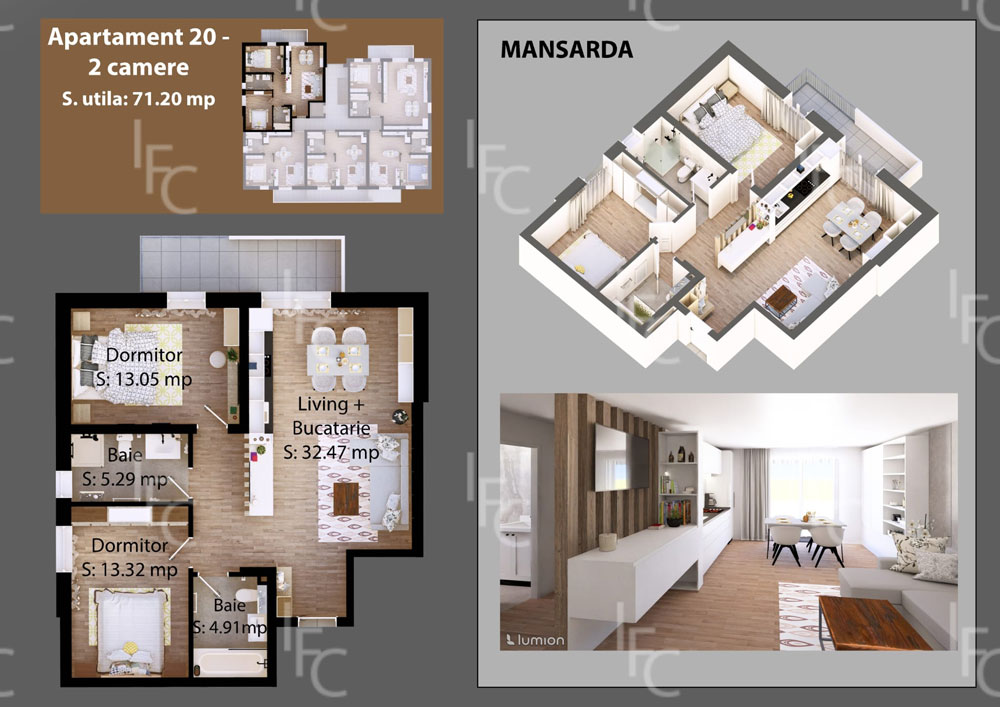 Blocul rezidențial IFC Imobiliare propune un stil de viață contemporan și confortabil, adaptat perfect cerințelor fiecărei familii. Garsonierele și apartamente cu 1, 2 și 3 camere sunt ideale pentru tineri, cupluri sau familii.