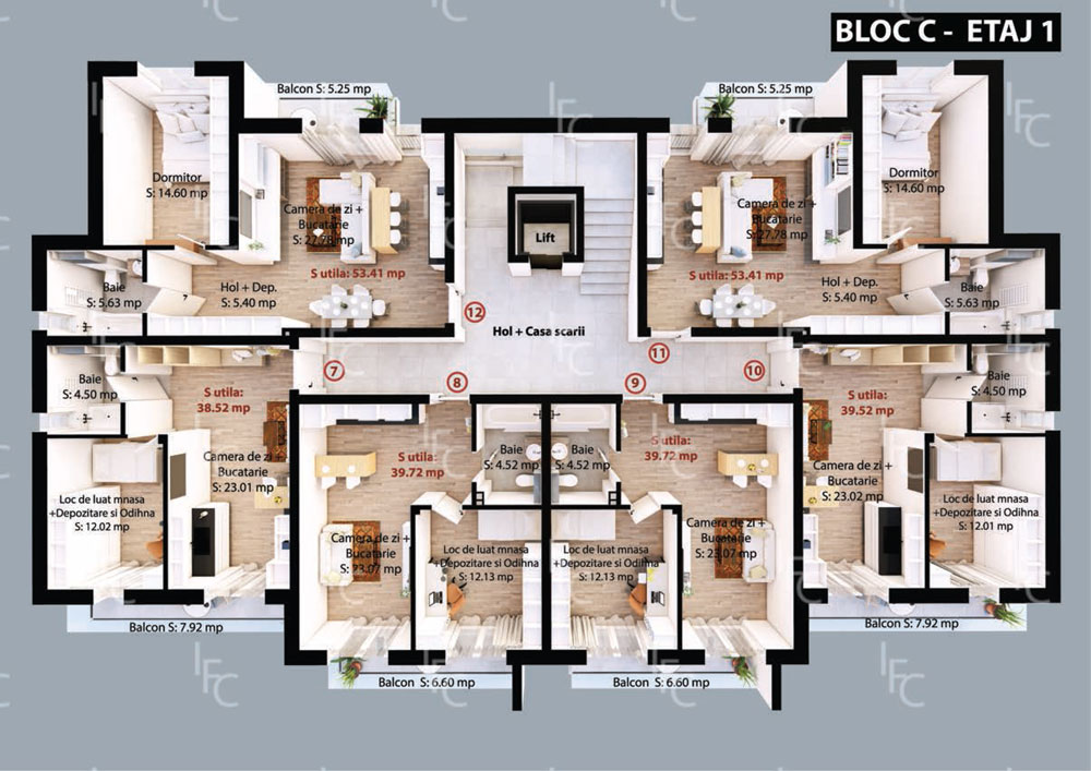 Cu un design modern și atent integrat în peisajul urban, Blocul C găzduiește 22 de apartamente atent compartimentate, gândite pentru a oferi funcționalitate, confort și un stil de viață superior.