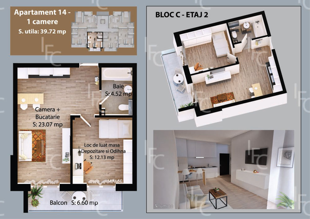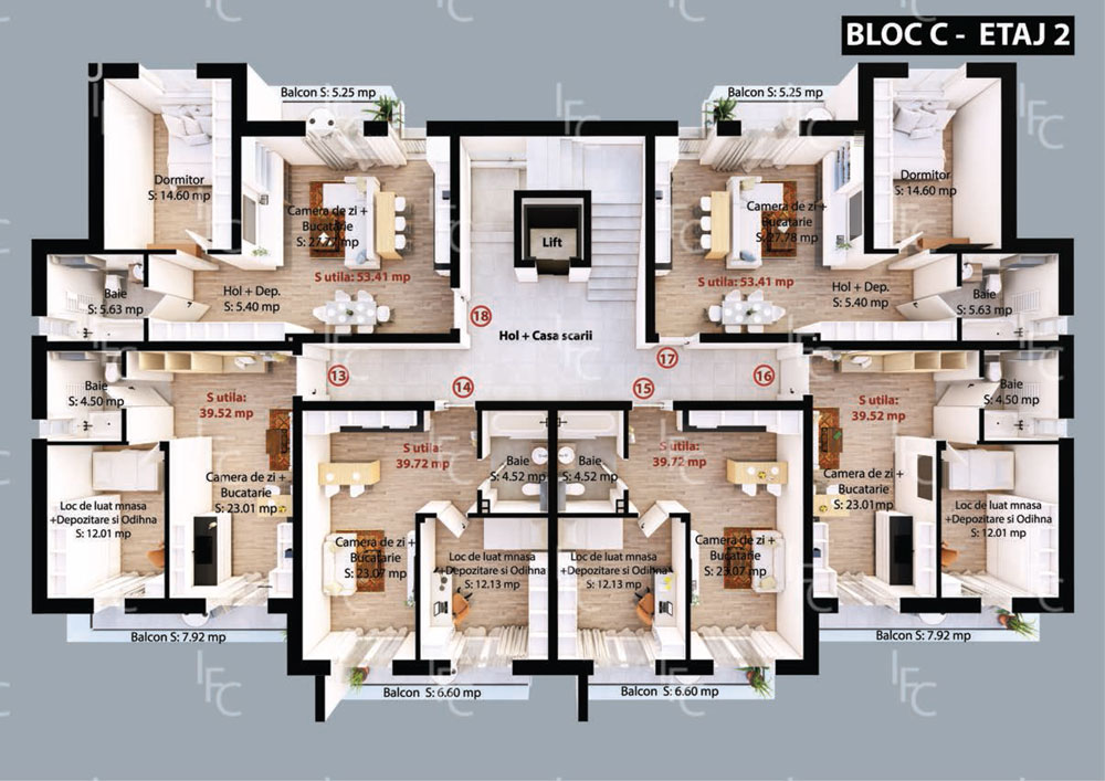 Blocul C găzduiește 22 de apartamente atent compartimentate, gândite pentru a oferi funcționalitate, confort și un stil de viață superior.