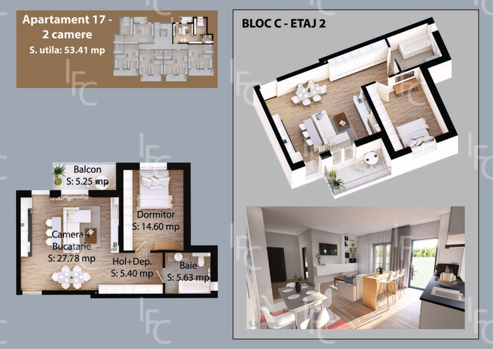 Blocul C găzduiește 22 de apartamente atent compartimentate, gândite pentru a oferi funcționalitate, confort și un stil de viață superior.