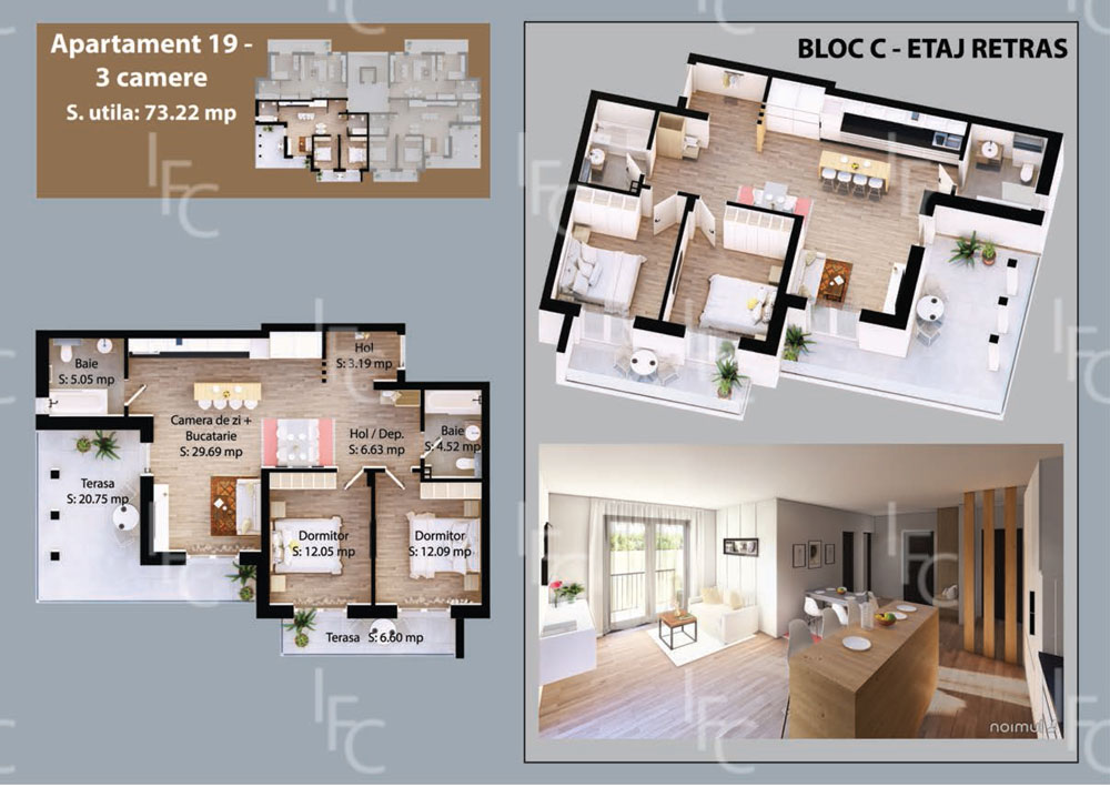 Blocul C găzduiește 22 de apartamente atent compartimentate, gândite pentru a oferi funcționalitate, confort și un stil de viață superior.