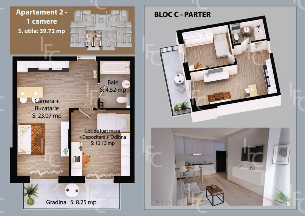 Blocul C găzduiește 22 de apartamente atent compartimentate, gândite pentru a oferi funcționalitate, confort și un stil de viață superior.