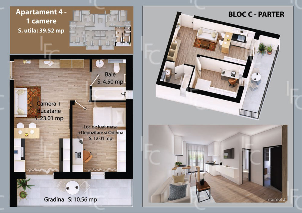 Blocul C găzduiește 22 de apartamente atent compartimentate, gândite pentru a oferi funcționalitate, confort și un stil de viață superior.