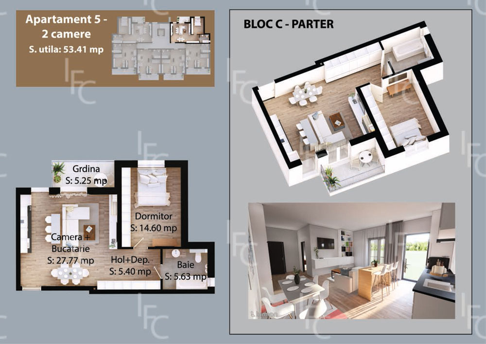 Blocul C găzduiește 22 de apartamente atent compartimentate, gândite pentru a oferi funcționalitate, confort și un stil de viață superior.